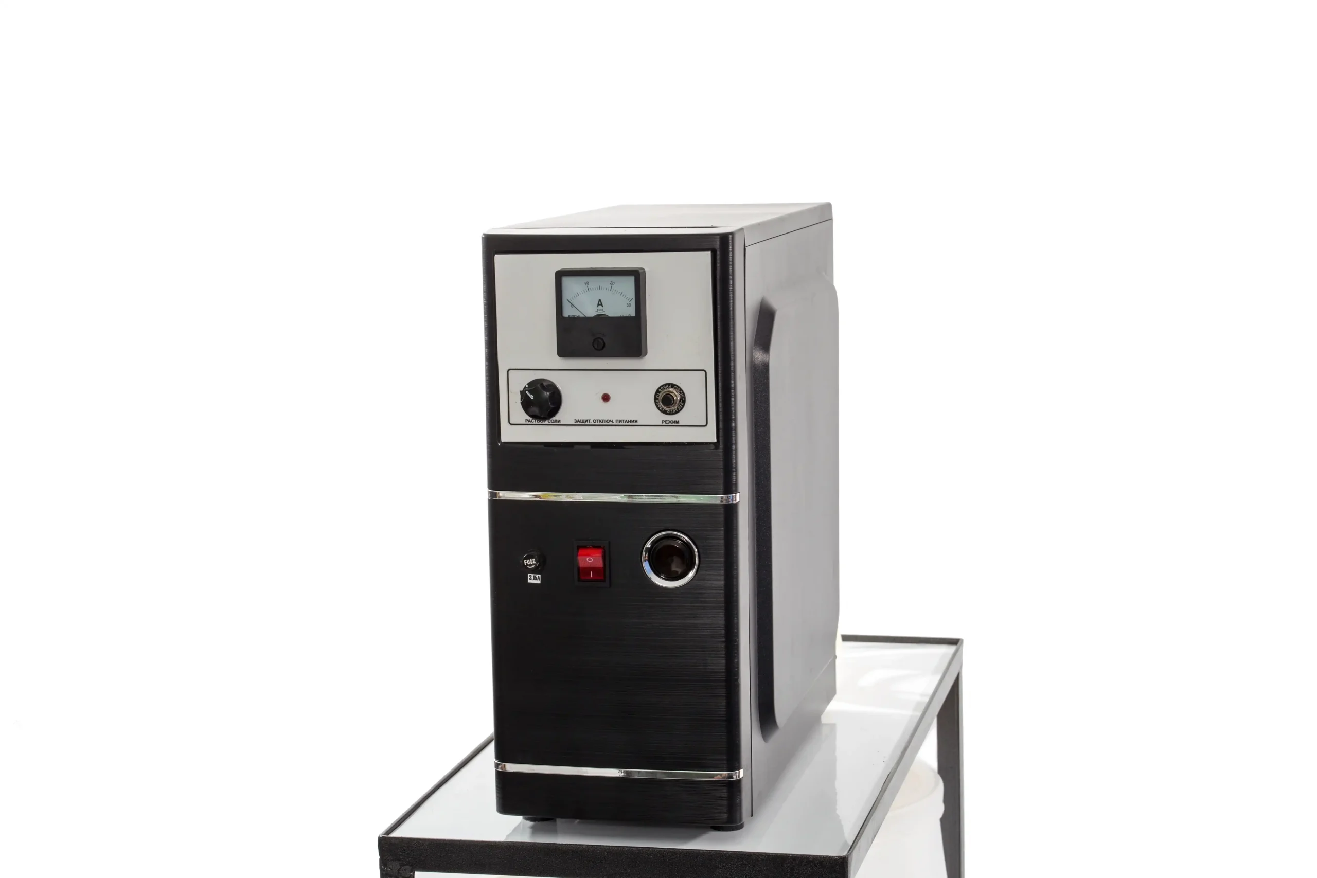 Установка разработана совместно с кафедрой общей гигиены и экологии ВГМУ и предназначена для электрохимического преобразования водно-солевых растворов хлоридов в метастабильный активированный дезинфицирующий раствор - анолит нейтральный, действующие вещества которого представлены продуктами анодного окисления воды, водорода и хлорида натрия (HClO, HClO2, ClO2, H2O2, HO2, O3, O2, HO) и моющий раствор - католит, основным действующим началом которого является щелочь и перекисные соединения (NaOH, Н+, Н202 и др.). Растворы обладают ярко выраженными окислительными и восстановительными свойствами.
